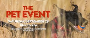 THE Pet Event Presented by the Door County Cooperative Country Store Returns Calling all pet parents, pet families, and pet enthusiasts to THE Pet Event presented by the Door County Cooperative Country Store on Saturday, September 29, 2018 from 10 a.m. to 2 p.m. To thank our amazing customers, we will have popular name-brand feed and food for livestock, hobby farm animals, and household pets on sale for incredible prices during THE Pet Event. Save $12 on a 30-pound bag…